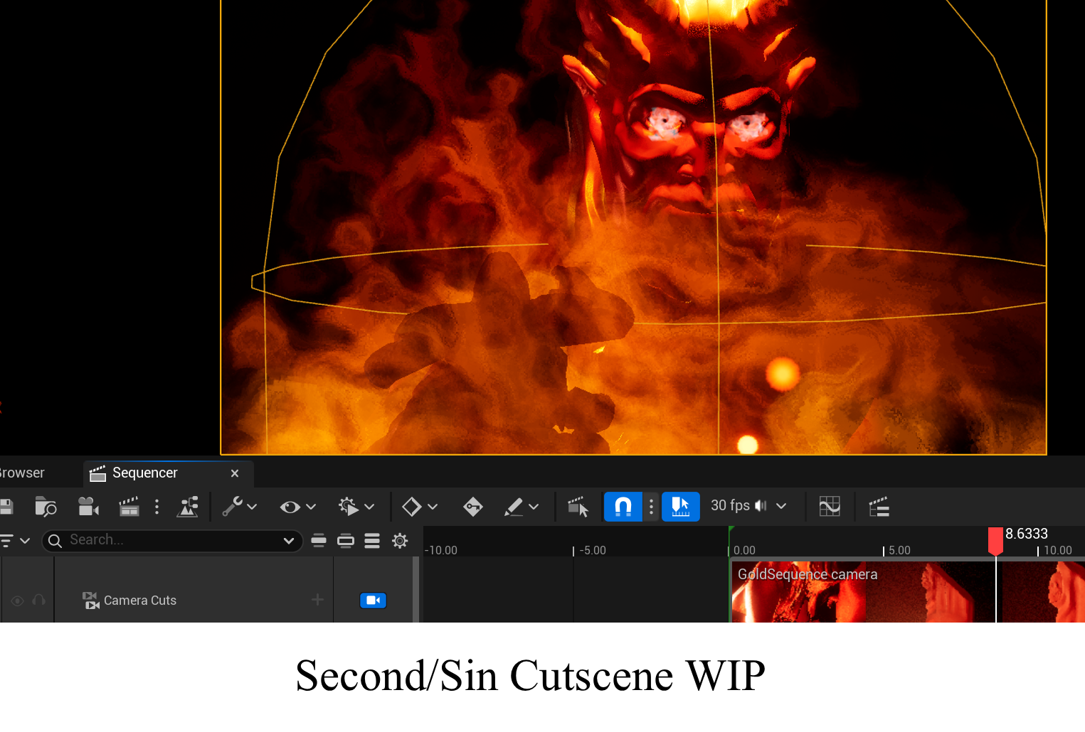 Finally, I started the second cutscene. The second cutscene was a smaller cutscene that played when the protagonist takes the second coin and sins. This was fairly easy and I spent a good amount of time ensuring the particle effects were great.